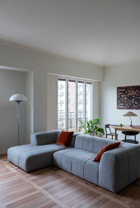In questo appartamento a Milano in zona Wagner, la demolizione di tutte le partizioni interne ha permesso una nuova definizione dello spazio: ciò ha consentito inoltre di evidenziare la struttura, riportata in luce e valorizzata attraverso una nuova funzione ornamentale.
